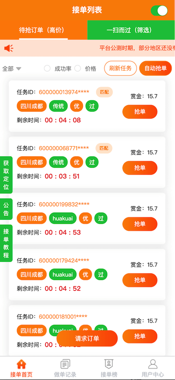 類似“碼幫平臺(tái)/FZ輔助/碼力平臺(tái)/閃電接單/蜻蜓輔助/雛菊輔助”,第三方微信輔助注冊(cè)任務(wù)管理平臺(tái)——“蜜蜂”任務(wù)平臺(tái)管理系統(tǒng),幫助有大量微信注冊(cè)需求的商家和想要0元投入月入過萬的兼職人員搭建連通的橋梁。系統(tǒng)由用戶端H5/APP、商家端H5/APP、地推商戶端H5、商家端PC、平臺(tái)端PC架構(gòu)而成,支持用戶隨時(shí)提現(xiàn),支付寶實(shí)時(shí)到賬,商家端一鍵掃碼下單,方便快捷;系統(tǒng)支撐商家每天10萬+的訂單下發(fā)和用戶隨時(shí)隨地?fù)寙危鰡危嵢蚪穑岈F(xiàn)等更多功能。。。
